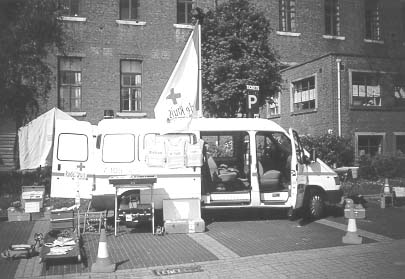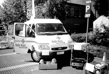 Foto 1: Demo-stand SIT. Via een static show wordt de functie van het SIT duidelijk gemaakt en het materiaal aan het publiek getoond. Foto 2: Voorkant SIT- voertuig tijdens static show. Op dit moment was de striping en extra belettering nog niet op het voertuig aangebracht. Foto 3: Achterkant van de static show. |