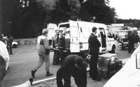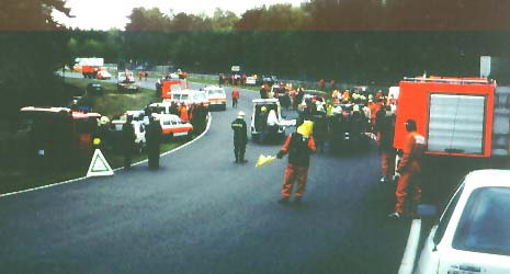 Foto 1: Overzicht van het rampterrein bij aankomst SIT. Het ongeval heeft zich rechts in de bocht voorgedaan. Foto 2: Het SIT en